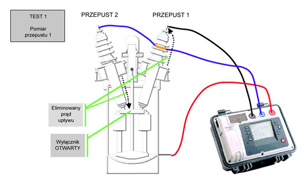 Poniżej uzwojenie WN jest mierzone bez wpływów