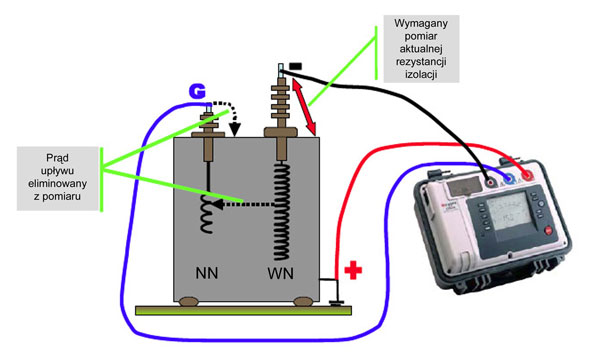 rezystancji izolacji z wykorzystaniem zacisku ochronnego GUARD