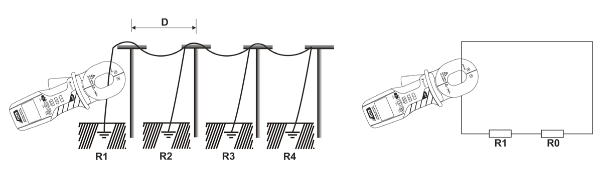 Jeżeli w odpowiedniej odległości od badanego pręta o oporności RA, istnieją dwie niezależne pomocnicze sondy uziemiające