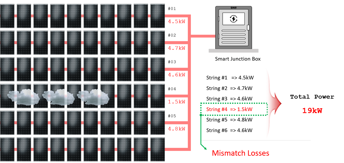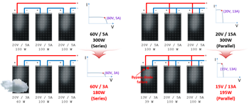 Jeśli teraz jeden string macierzy fotowoltaicznej zmniejszy swoją moc wyjściową z powodu wadliwego