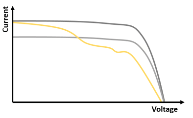 otwartego (Voc) do prądu zwarcia (Isc) poprzez przyłożenie obciążenia. W zależności od kształtu krzywej można wykryć