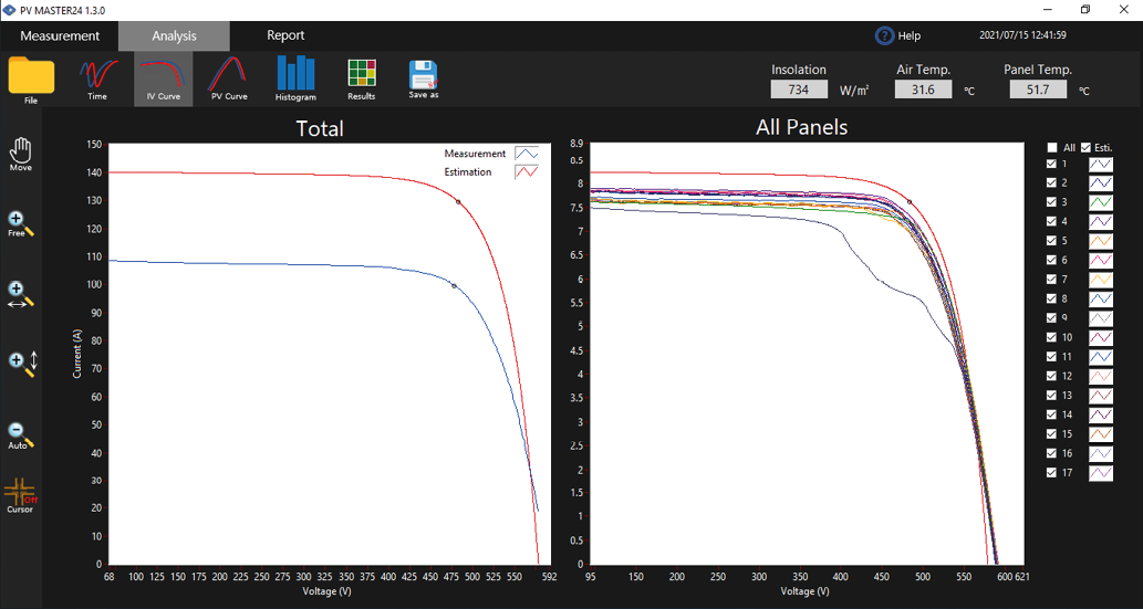 Technika ta rejestruje charakterystyki napięcia i prądu (krzywa IV) paneli fotowoltaicznych, zaczynając od napięcia obwodu
