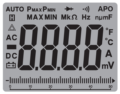 Czytelny wyświetlacz z podświetleniem i linijką 50 segmentową |
