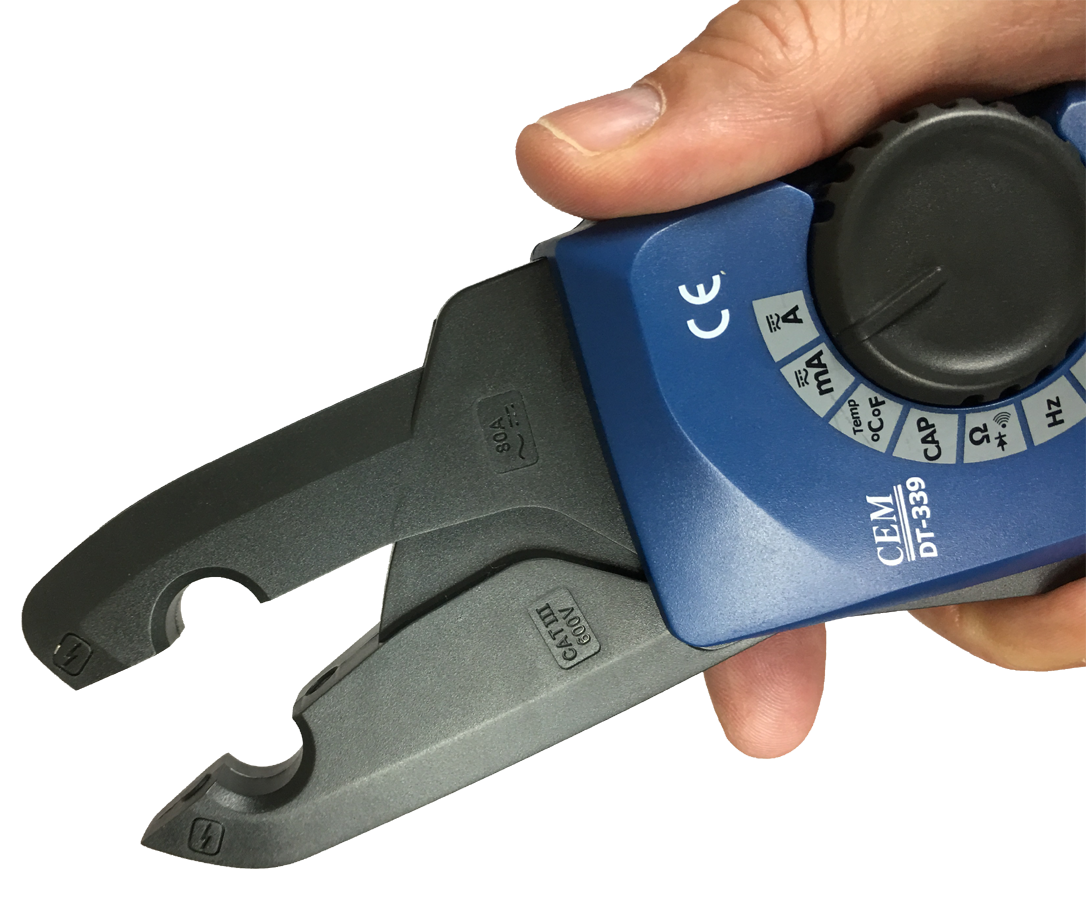 DT-339 jest nową konstrukcją przyrządu do pomiaru prądu, napięcia, rezystancji, etc.. Istotne zalety miernika to mała obudowa mieszcząca się idealnie w dłoni, niewielkie szczęki specjalnie ukształtowane tak, aby ułatwić podłączenie w ciasnych przestrzeniach oraz duży podświetlany wyświetlacz ułatwiający odczyt.