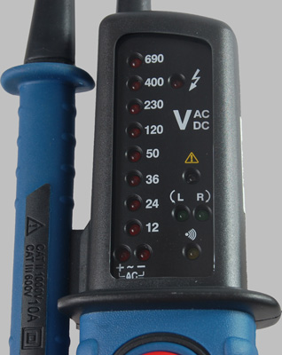narzędziowej każdego elektryka. Umożliwia detekcję obecności napięcia AC/DC oraz mierzy jego