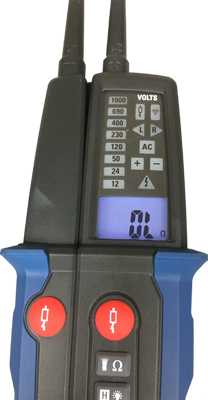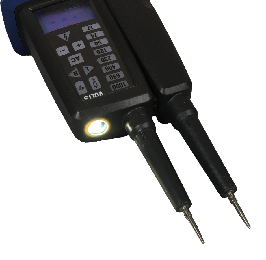 Umożliwia detekcję napięć AC i DC oraz mierzy ich wartość wyświetlając wynik na wyświetlaczu LCD oraz jednocześnie sygnalizując wynik kontrolkami LED.