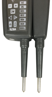 wygodny test napięcia w gniazdku. Rozstaw końcówek pasujący do gniazd sieciowych |