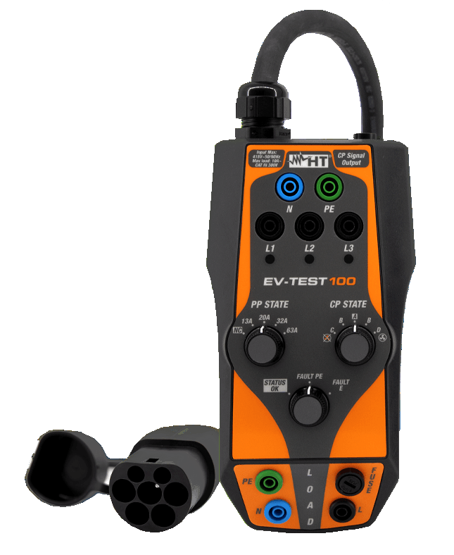 EV-TEST100 w połączeniu z odpowiednim wielofunkcyjnym miernikiem firmy HT (np. MacroTest G3) symuluje pojazd