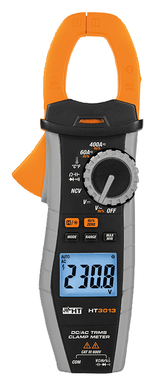 HT3013 to amperomierz cęgowy, który może mierzyć prądy do 400A DC/AC i napięcia AC/DC do 600V, rezystancję,