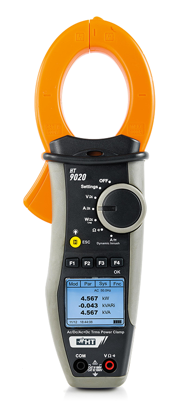 Cęgowy analizator jakości zasilania HT9020 jest przeznaczony do pomiaru prądu DC, AC+DC TRMS do 1000A według CAT IV 600V zgodnie z normą IEC/EN61010-1.