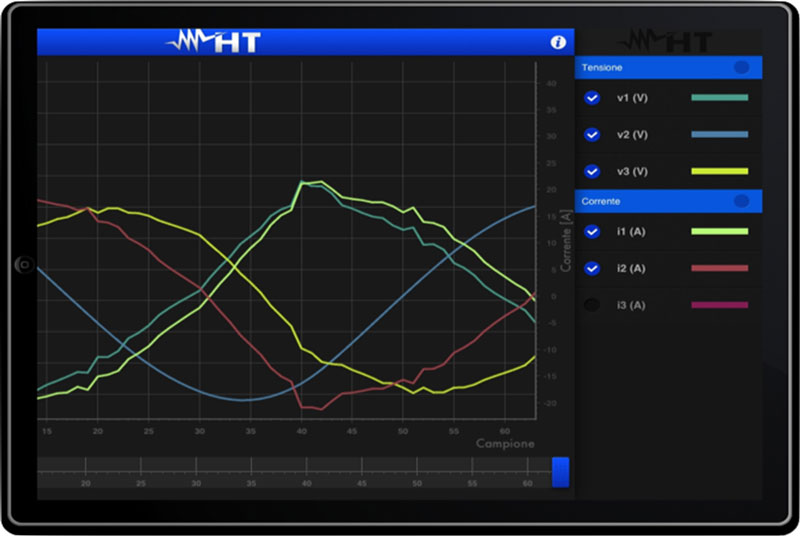 Wszystkie elektryczne parametry mogą być wyświetlane w obu trybach cyfrowym i graficznym, w formie przebiegów, histogramów i wykresów wskazowych. Wykres wskazowy pokazuje kąt fazowy między dowolnym napięciem i odnośnym prądem, ujawniając charakter podłączonego obciążenia indukcyjny lub pojemnościowy.