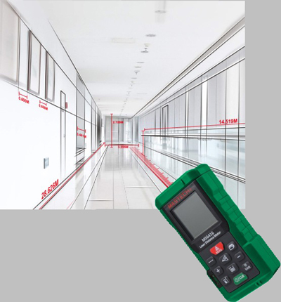 Laserowy miernik odległości do 40m, dokładność +/-1,5mm, sumowanie i odejmowanie pomiarów, obliczanie powierzchni i kubatury, użycie twierdzenia Pitagorasa, podświetlenie wyświetlacza, pamięć 99 wyników