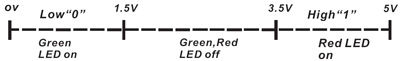 - 1,5V÷3,5V (zielona i czerwona LED wył.)