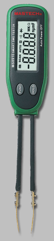MS8910 jest przyrządem przeznaczonym do testowania elementów montażu powierzchniowego (SMD). Końcówki pomiarowe w kształcie pęsety umożliwiają wygodne podłączenie miernika do badanego elementu. Niezwykle przydatną cechą, przyspieszającą wykonywanie pomiarów jest automatyczne rozpoznawanie przez