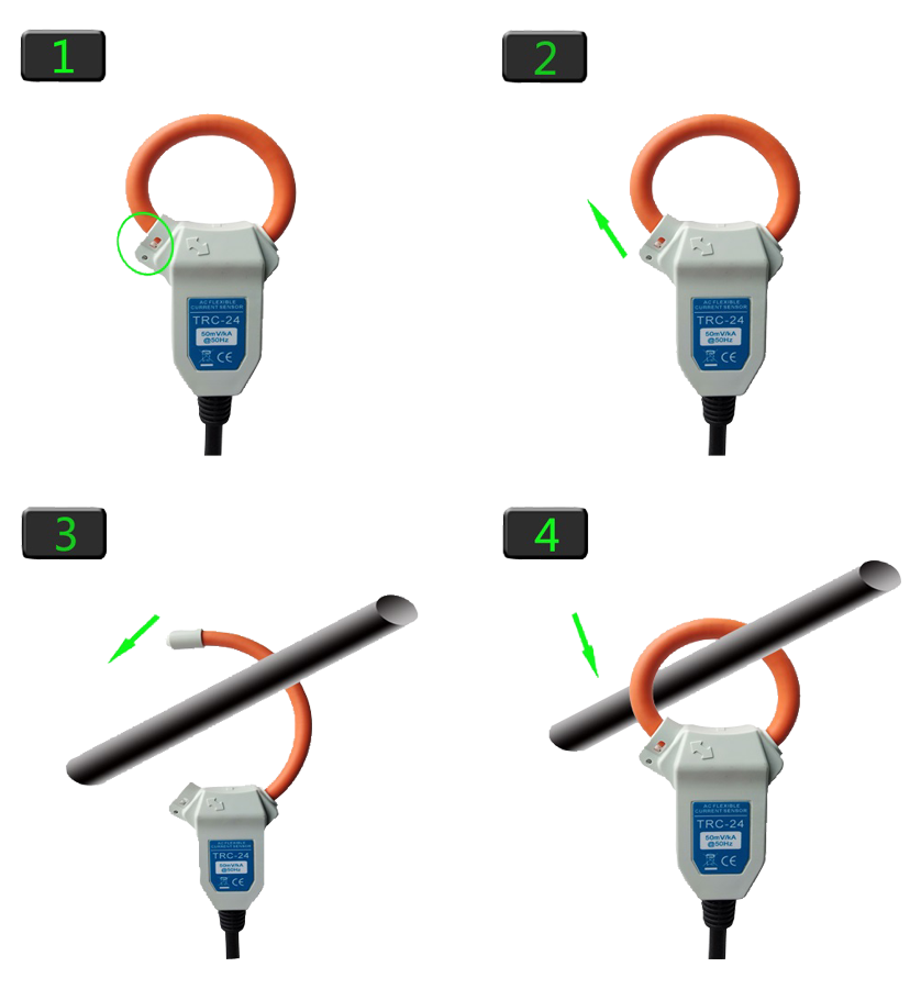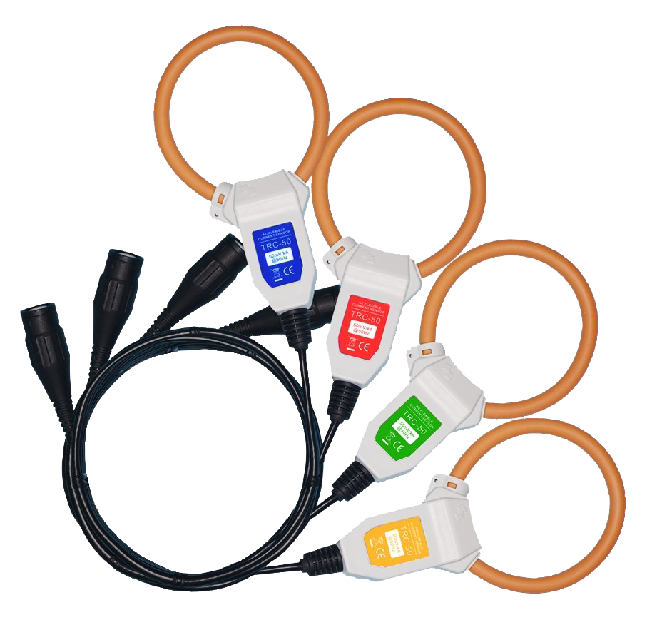 Widok zestawu 4 cewek Rogowskiego TRC do współpacy z analizatorem jakości energii Mi550