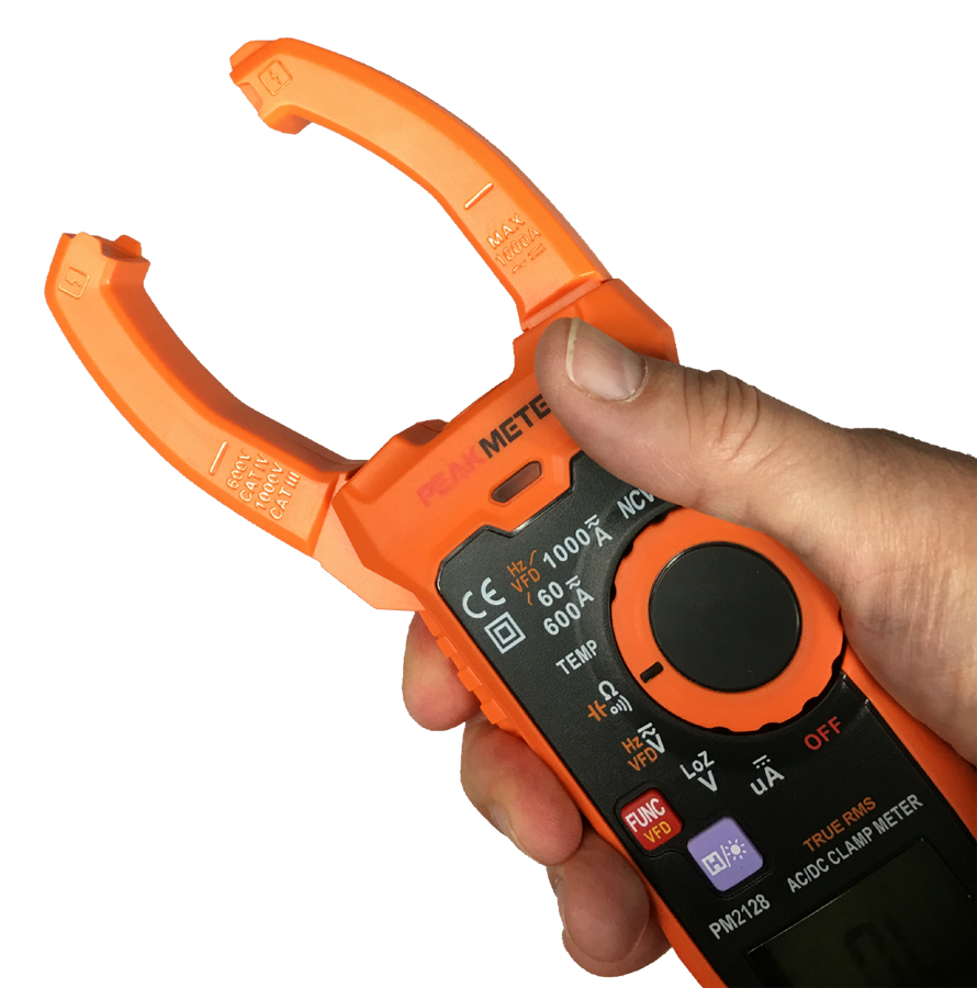 - Pomiar częstotliwości poprzez cęgi (A) lub przewodami (V)
