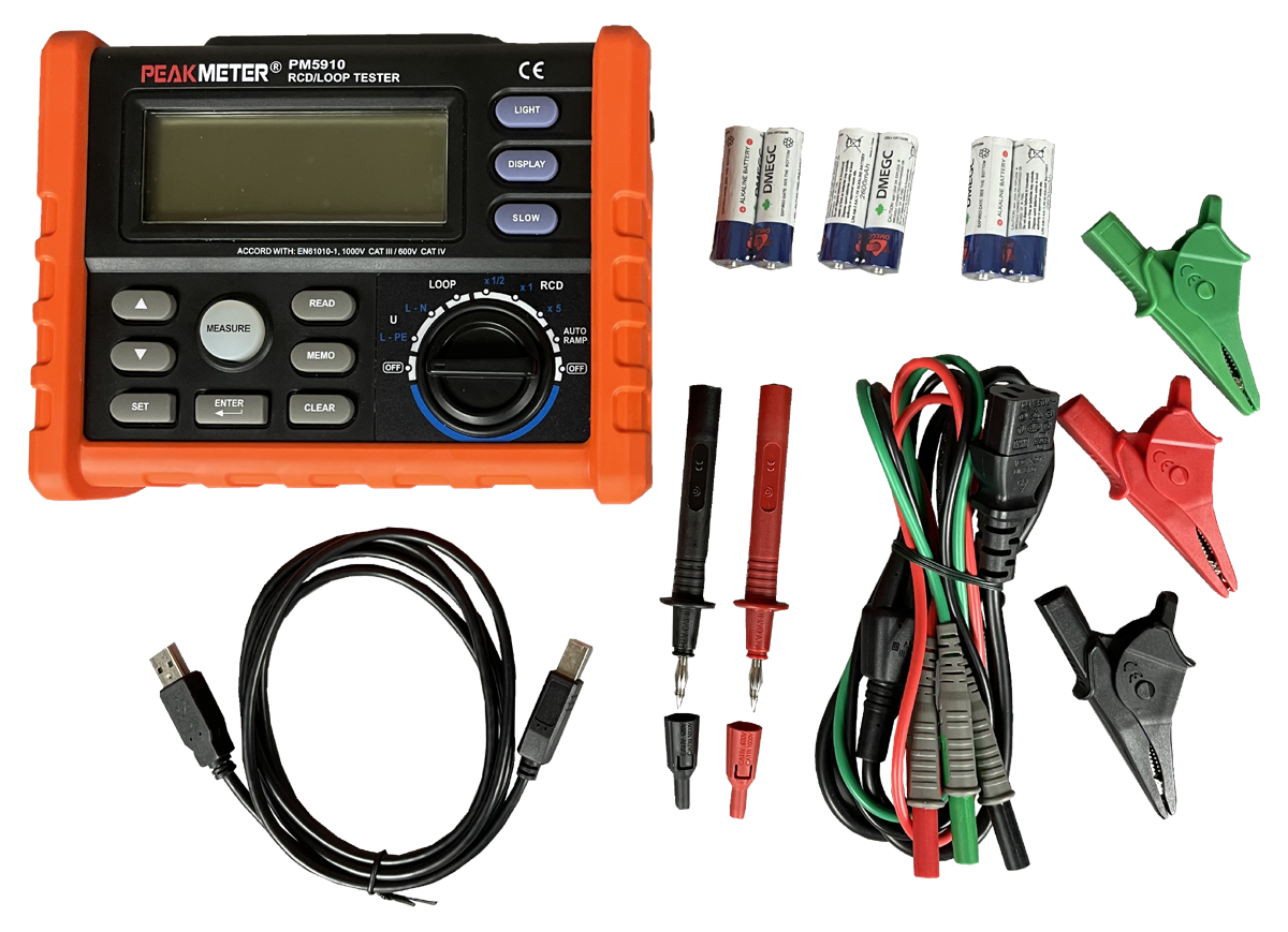 Potrafi mierzyć prąd wyzwolenia RCD, czas wyzwolenia RCD, rezystancję pętli L-PE, napięcie i częstotliwość sieci, etc.