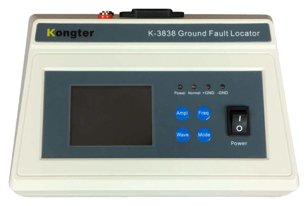 Model K-3838 jest najnowszą generacją lokalizatora zwarć do ziemi opracowaną przez firmę Kongter, służącą do szybkiego wykrycia obecności zwarcia i następnie jego punktowego zlokalizowania - do wykorzystania w systemach DC, gdzie kable elektryczne na skutek obrażeń izolacji zaczynają przewodzić prąd do ziemi.