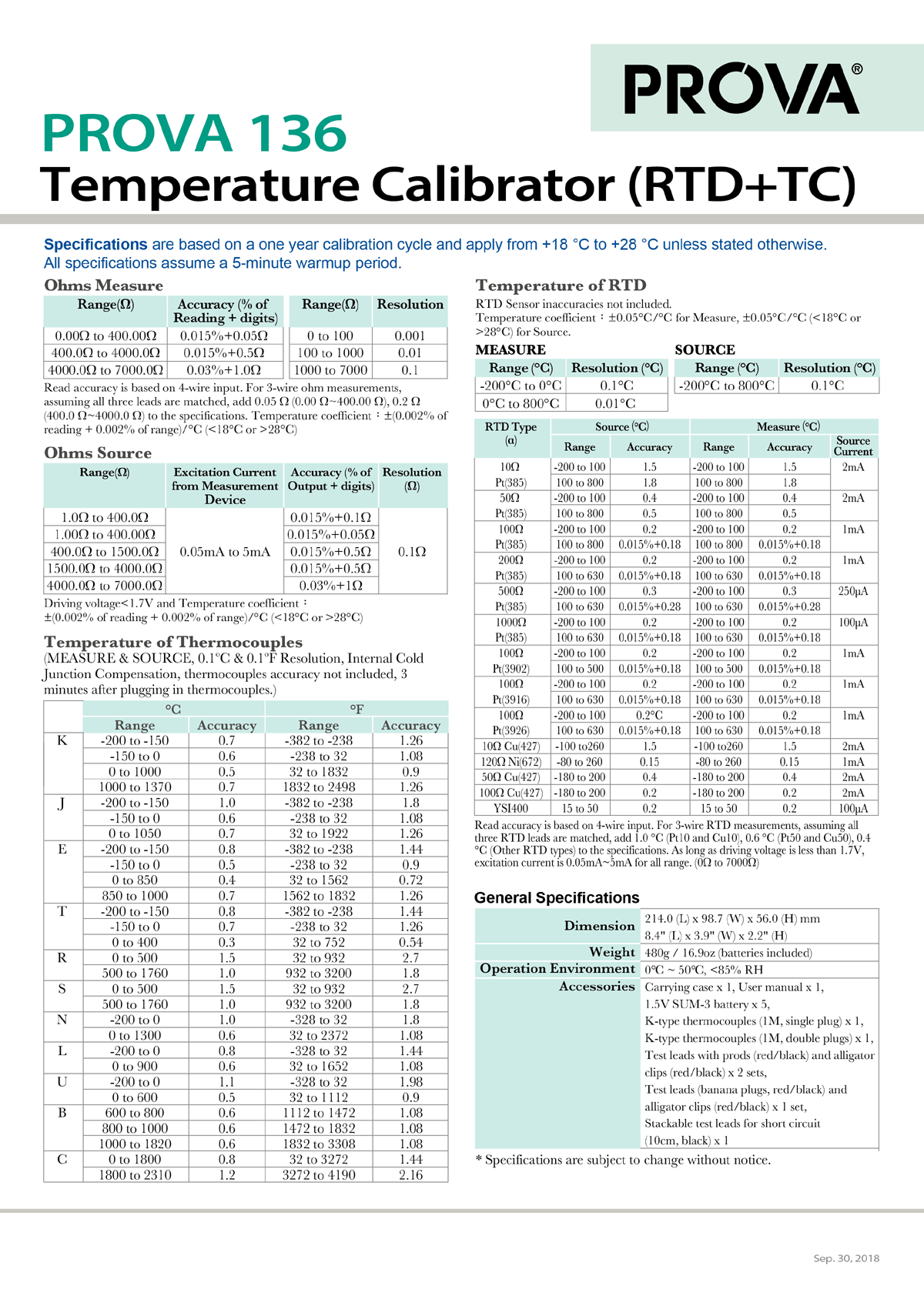 - Źródło i pomiar 14 typów RTD i rezystancji