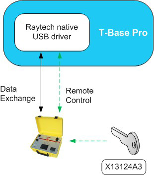 | Opcja T-Base Pro Remote do zdalnego sterowania przyrządami Raytech Funkcja T-Base Pro Remote, do zdalnego sterownia przyrządem Raytech może być odblokowana poprzez wprowadzenie klucza licencyjnego. Odblokowany przyrząd może być zdalnie sterowany przez komfortowy graficzny interfejs użytkownika T-Base Pro. Nie jest potrzebny żaden dodatkowy program. Każdy T-Base Pro może sterować kilka przyrządów Raytech-a, dopóki są odblokowane. |