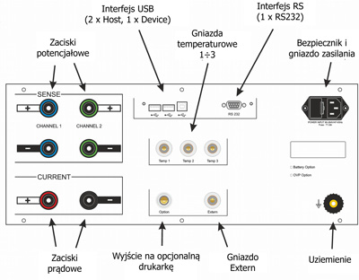 - Praca z opcjonalnym akumulatorem (200 pojedynczych pomiarów przy 15A)