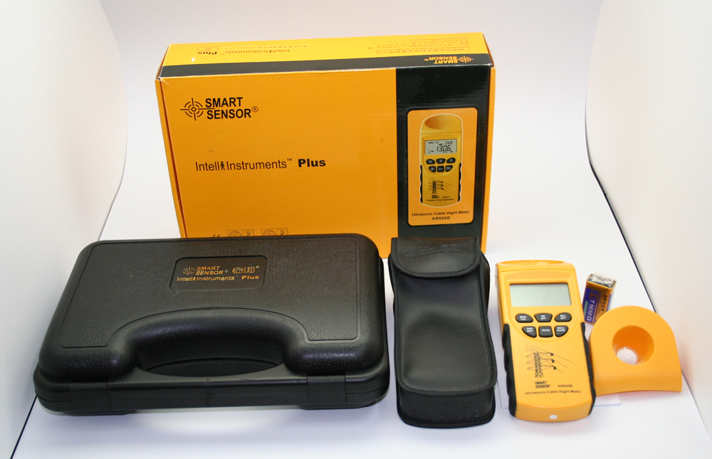 Przyrząd AR600E wykorzystuje ultradźwięki do pomiaru wysokości przewodów linii napowietrznych.