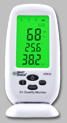 Miernik stężenia pyłów AR830 posiada wyświetlacz LCD i zapewnia szybkie i dokładne