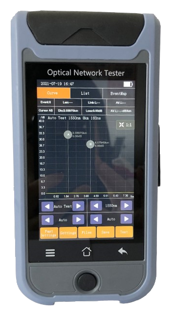 - Ekspert OTDR: profesjonalny pomiar, krzywe/lista/mapa są wyświetlane jednocześnie