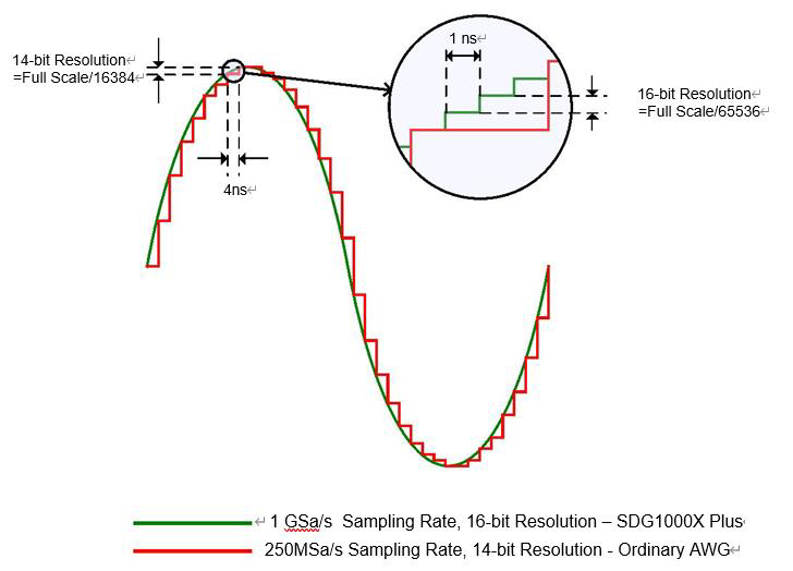 Dzięki systemowi próbkowania 1GSa/s i 16-bitowemu, SDG1000X Plus osiąga niezwykle wysoką dokładność