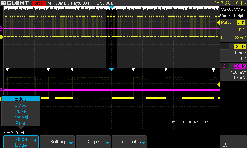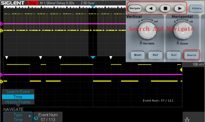 SDS1000X-E może szukać przypadków specyfikowanych przez użytkownika w ramce.
