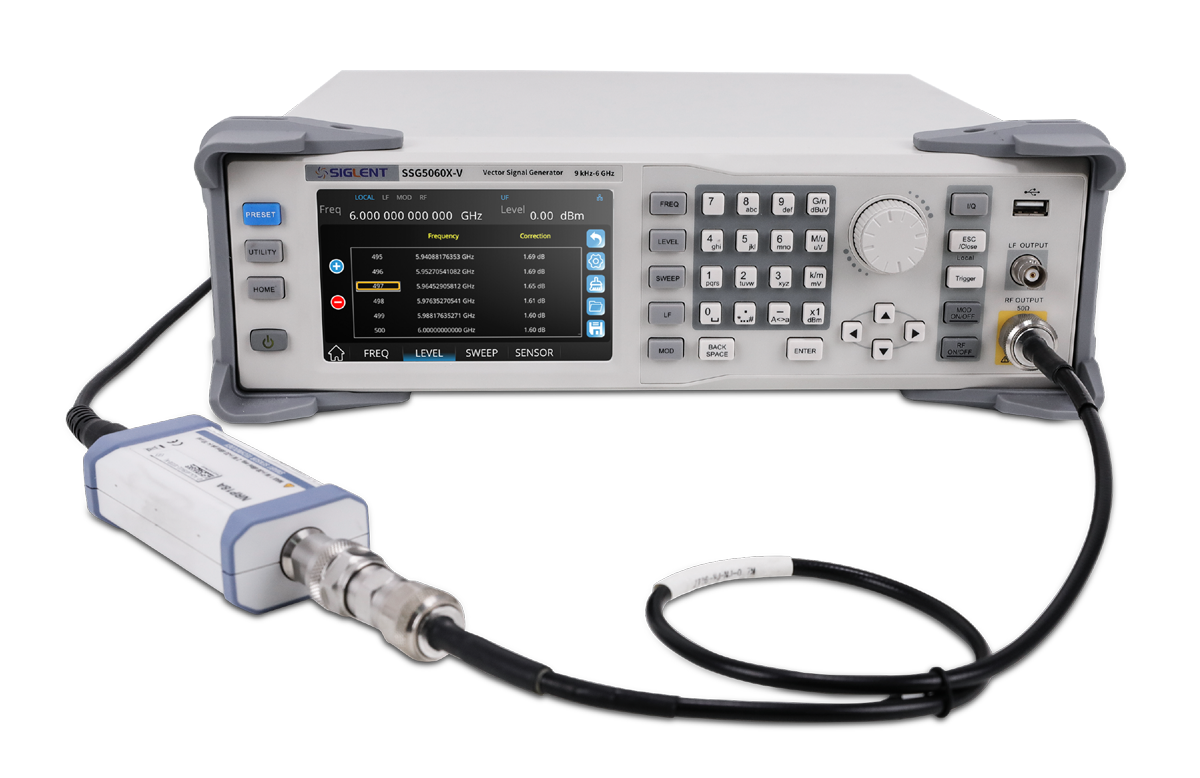 Zakres częstotliwości CW 9k - 6GHz; zakres poziomów -140 dBm ~ +26 dBm; rozdzielczość częstotliwości 0,001Hz , szum fazy -120 dBc/Hz przy 1GHz, 20kHz offset; 5 calowy TFT ekran dotykowy; z wewnętrzną modulacją IQ 60MHz |
