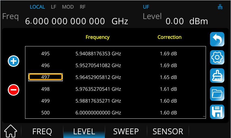 Zakres częstotliwości CW 9k - 6GHz; zakres poziomów -140 dBm ~ +26 dBm; rozdzielczość częstotliwości 0,001Hz , szum fazy -120 dBc/Hz przy 1GHz, 20kHz offset; 5 calowy TFT ekran dotykowy |