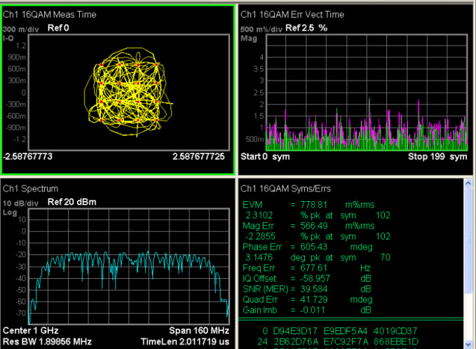 Zakres częstotliwości CW 9k - 4GHz; zakres poziomów -140 dBm ~ +26 dBm; rozdzielczość częstotliwości 0,001Hz , szum fazy -120 dBc/Hz przy 1GHz, 20kHz offset; 5 calowy TFT ekran dotykowy; z wewnętrzną modulacją IQ 60MHz |