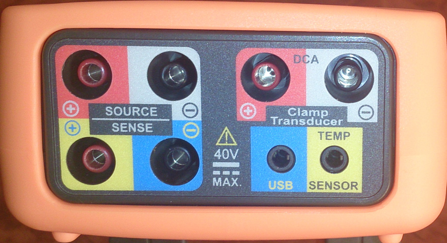 Widok zacisków umożliwiających podłączenie przewodów pomiarowych Kelvina,