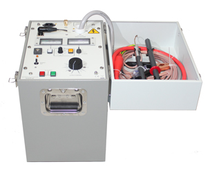 Przyrząd jest dostarczany w kompaktowej, przenośnej obudowie z podłączonym na stałe WN wyjściowym