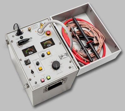 Na wyjściu przyrządu KV30-40D mk2 jest podłączony na stałe, częściowo ekranowany kabel wysokiego napięcia.