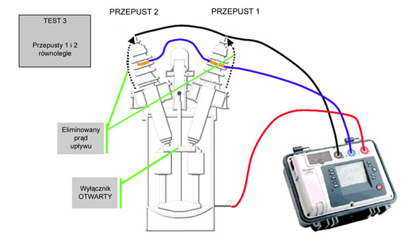 Poniżej uzwojenie WN jest mierzone bez wpływów