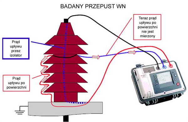 mierników izolacji, upływność powierzchniowa może być wykluczona z wyniku