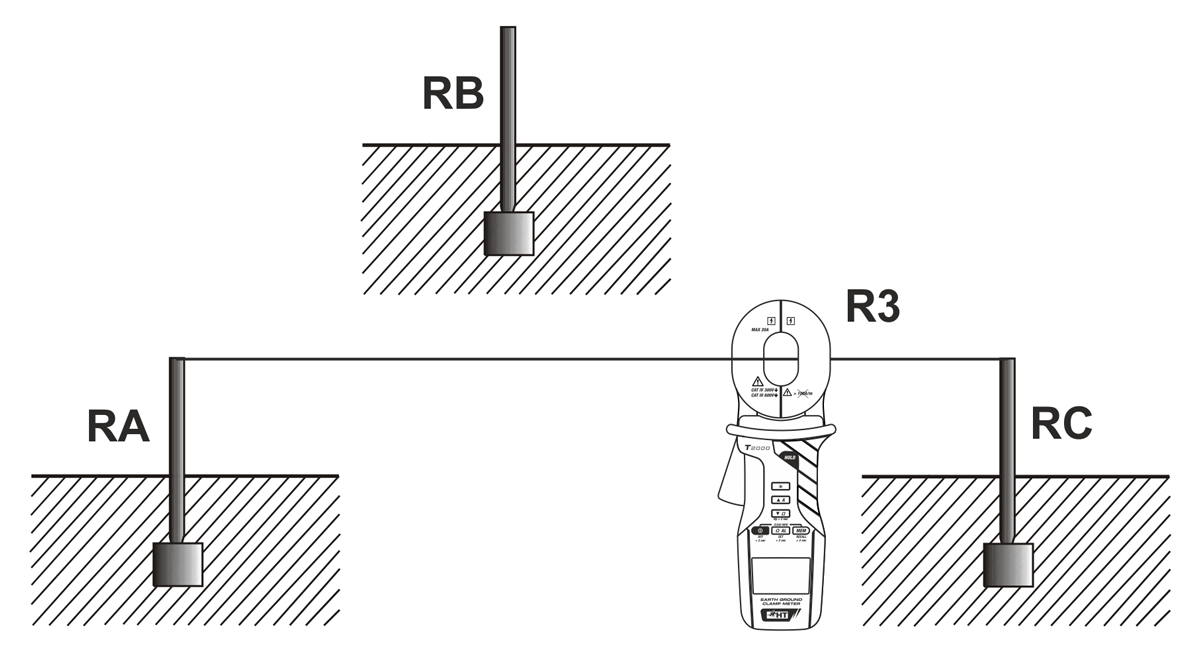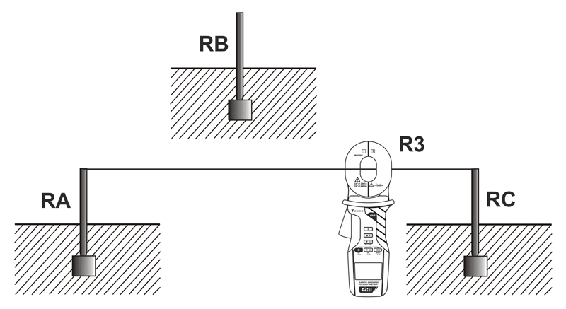 RA = (R1 + R3 – R2) / 2 → rezystancja sondy uziemienia A