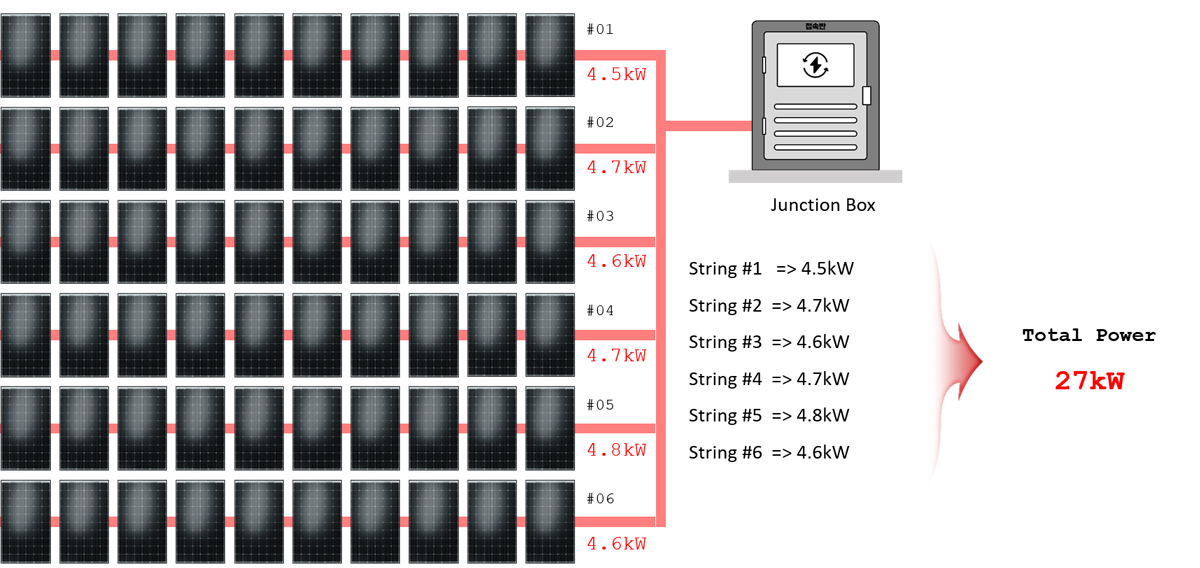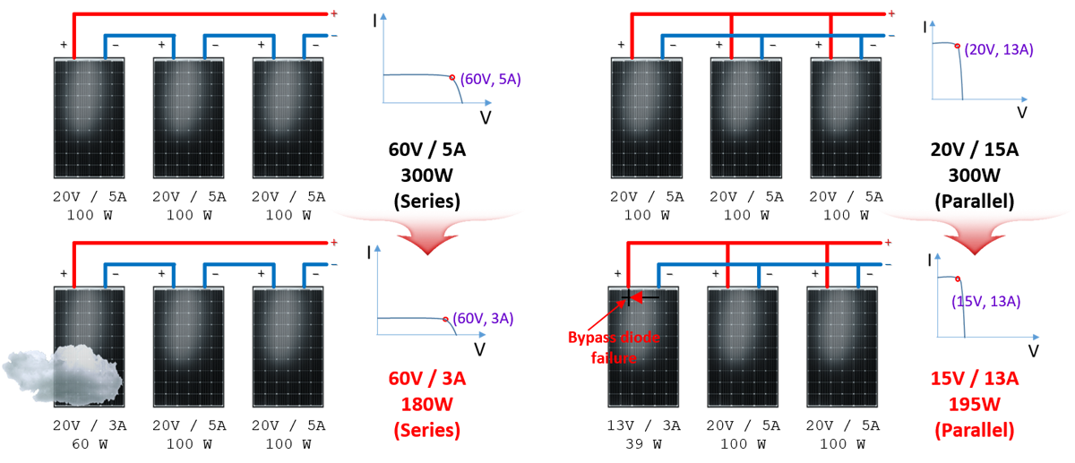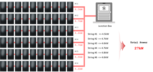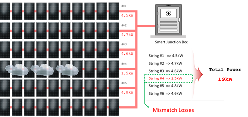 Jeśli teraz jeden string macierzy fotowoltaicznej zmniejszy swoją moc wyjściową z powodu wadliwego