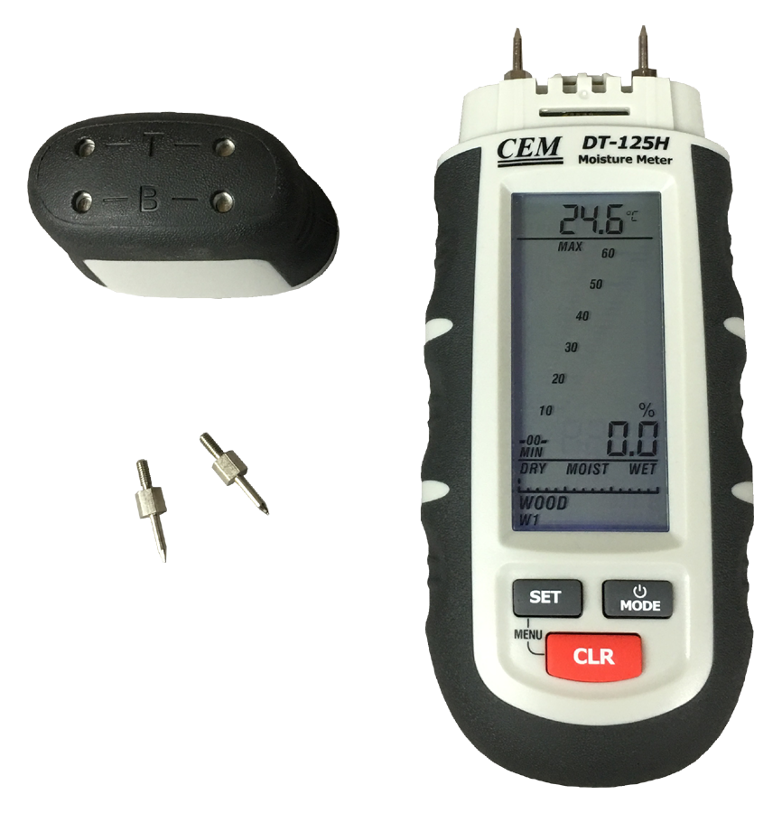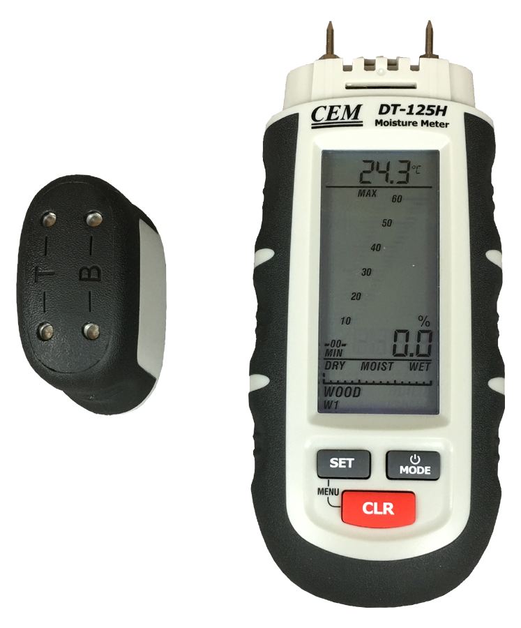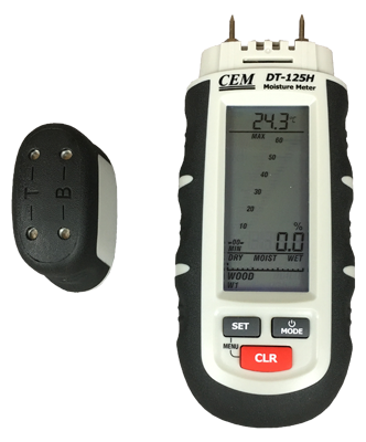 DT-125H jest miernikiem wilgotności służącym do badania zawilgocenia drewna (również kartonu i papieru), tynku, betonu, zaprawy i innych materiałów budowlanych.