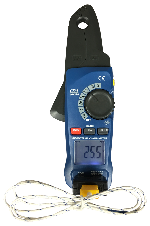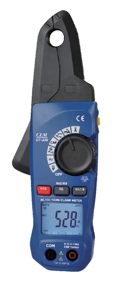 DT-339 jest nową konstrukcją przyrządu do pomiaru prądu, napięcia, rezystancji, etc.. Istotne zalety miernika to mała obudowa mieszcząca się idealnie w dłoni, niewielkie szczęki specjalnie ukształtowane tak, aby ułatwić podłączenie w ciasnych przestrzeniach oraz duży podświetlany wyświetlacz ułatwiający odczyt.