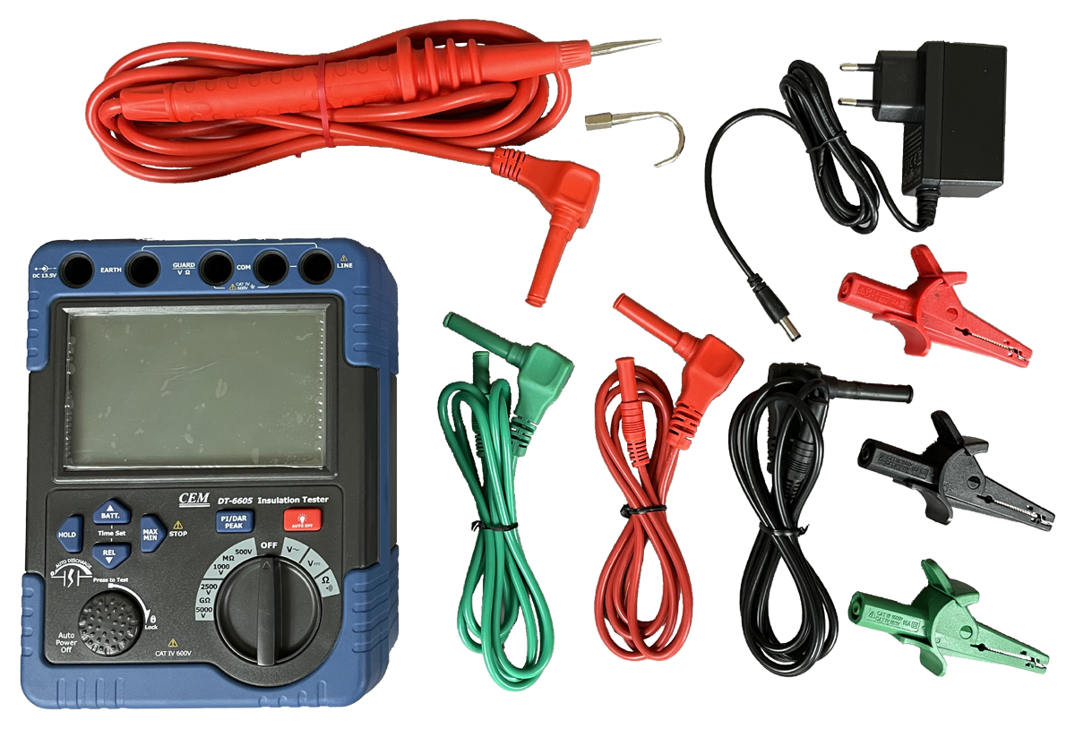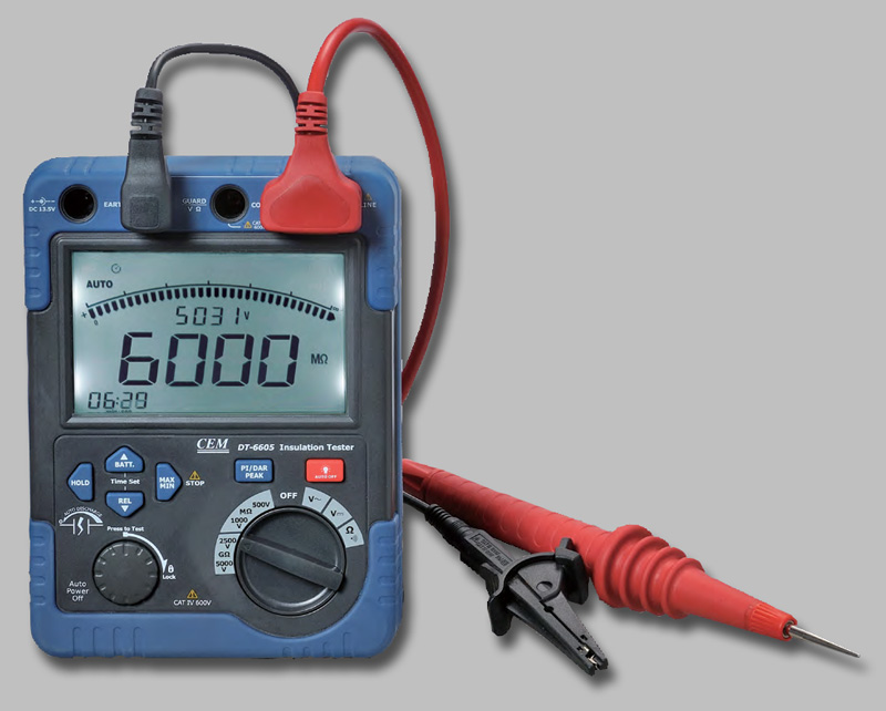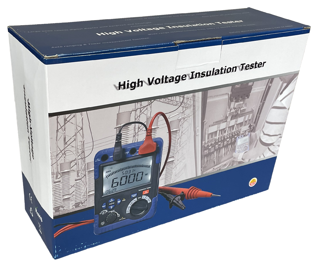 5kV miernik rezystancji izolacji, 500V/1kV/2,5kV/5kV; zakres do 60GOhm; 1,2mA/5MOhm; zasilanie R14 x 8 szt.