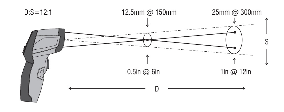 - Wbudowany podwójny celownik laserowy do identyfikowania mierzonego obszaru