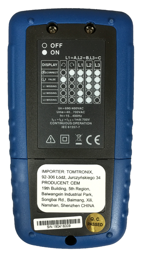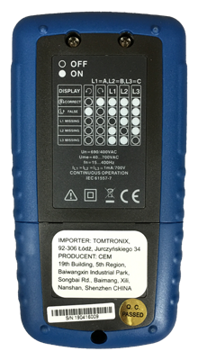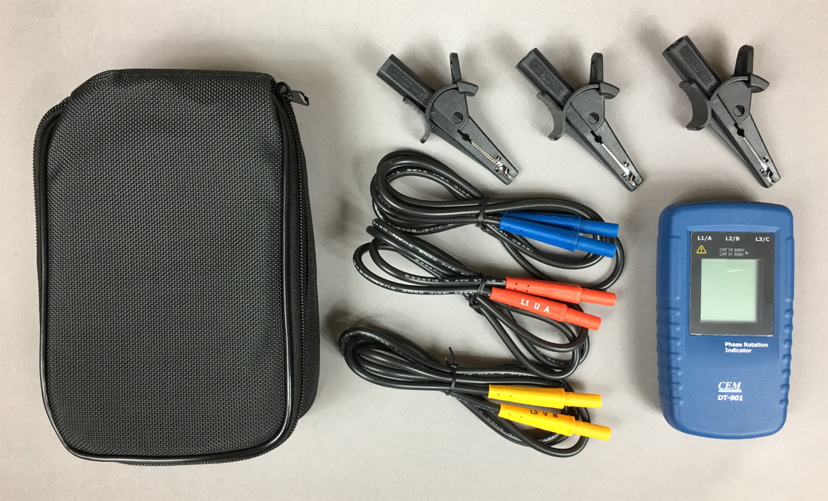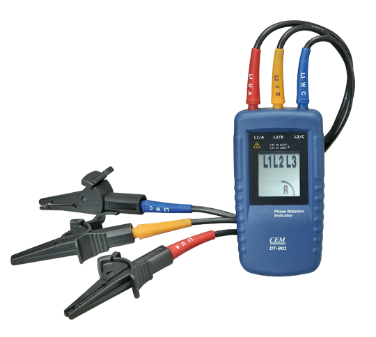 Wskaźnik kolejności faz DT-901 jest ręcznym przyrządem przeznaczonym do wykrywania kierunku wirowania faz w systemach trójfazowych.