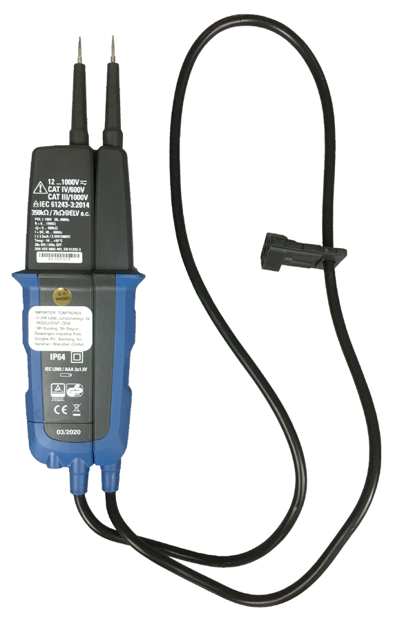 wygodny test napięcia w gniazdku. Rozstaw końcówek pasujący do gniazd sieciowych |