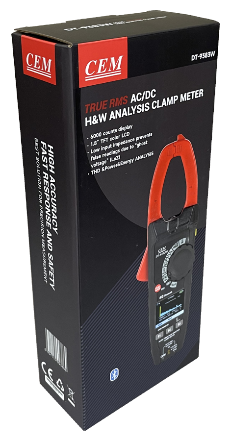 DT-9383W to profesjonalny multimetr cęgowy AC/DC, True RMS, do pomiaru jakości energii.