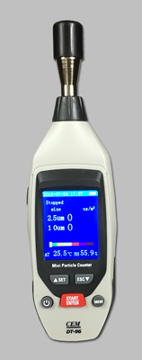 Miernik stężenia pyłów MINI DT-96 posiada kolorowy wyświetlacz TFT LCD i zapewnia szybkie i dokładne