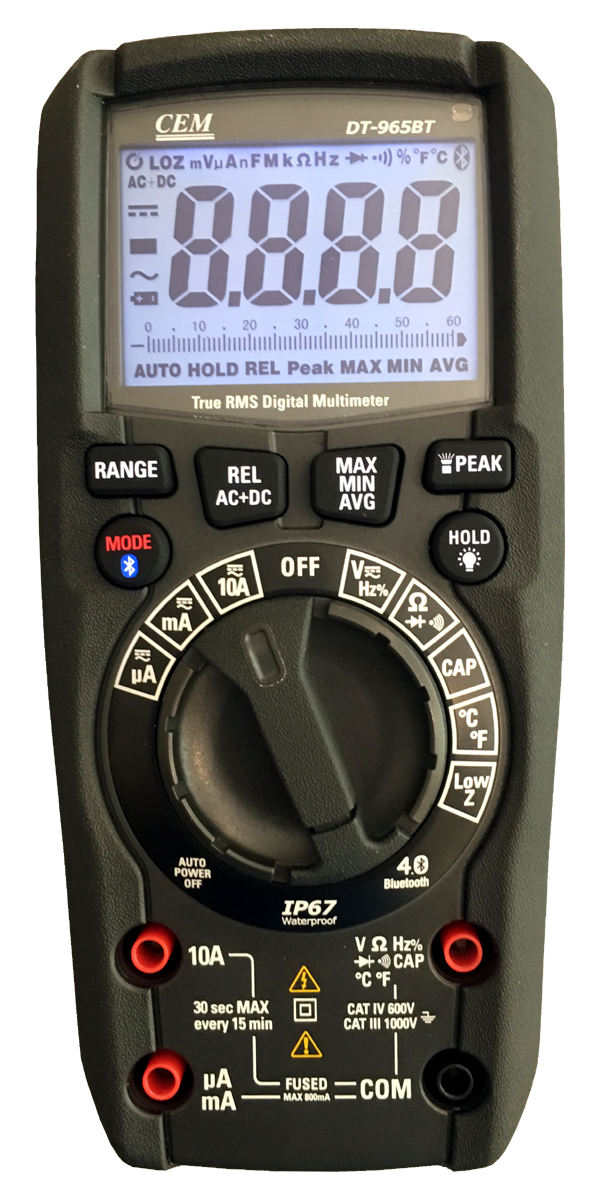Miernik DT-965BT jest profesjonalnym, wodoszczelnym oraz odpornym na upadki multimetrem z licznikiem 6000. Spełnia wymagania CAT IV 600V co jest potwierdzeniem najwyższego poziomu wytrzymałości na przepięcia. Stanowi połączenie precyzji, łatwości użycia, bezpieczeństwa i niezawodności. DT-965BT to cyfrowy miernik przystosowany do użytkowania w ciężkich warunkach przemysłowych tzw. "Heavy Duty".