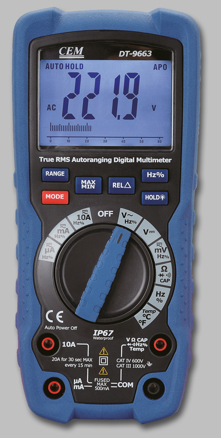 Miernik DT-9663 jest profesjonalnym, wodoodpornym oraz odpornym na upadki multimetrem z licznikiem 6000. Spełnia wymagania CAT IV 1000V co jest potwierdzeniem najwyższego poziomu wytrzymałości na przepięcia. Stanowi połączenie precyzji, łatwości użycia, bezpieczeństwa i niezawodności. DT-9663 to cyfrowy miernik przystosowany do użytkowania w ciężkich warunkach przemysłowych tzw. "Heavy Duty".